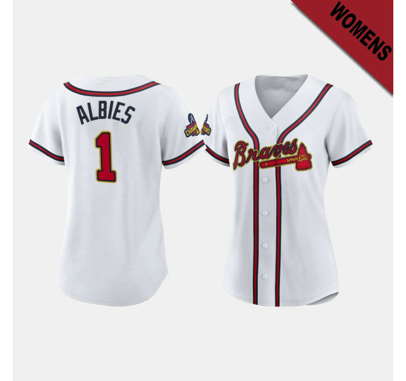 - Women's Braves #1 Ozzie Albies White 2022 Gold Program Replica Jersey