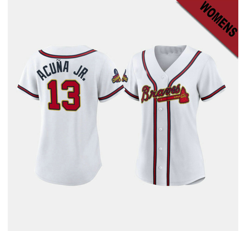 - Women's Braves #13 Ronald Acuna Jr. White 2022 Gold Program Replica Jersey