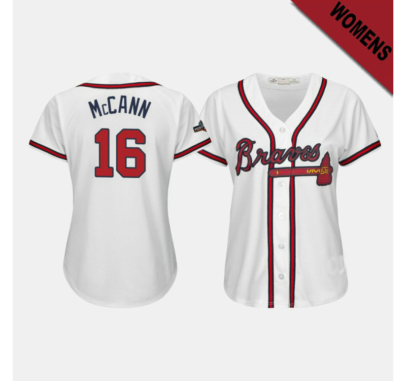 - Women's Braves #16 Brian McCann 2019 Postseason White Official Cool Base Jersey