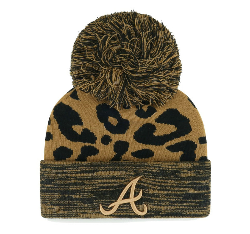 - Women's Braves '47 Leopard Rosette Cuffed Knit Hat with Pom