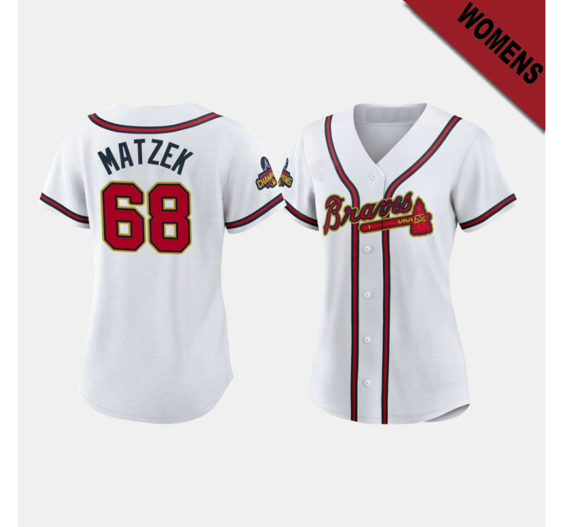 - Women's Braves #68 Tyler Matzek White 2022 Gold Program Replica Jersey