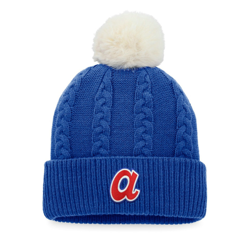 - Women's Braves Baseball Cable Cuffed Knit Hat with Pom - Royal