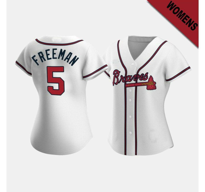 - Women's Braves Freddie Freeman #5 White Replica 2020 Home Jersey