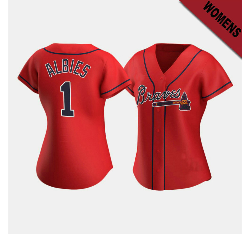 - Women's Braves Ozzie Albies #1 Red Replica 2020 Alternate Jersey
