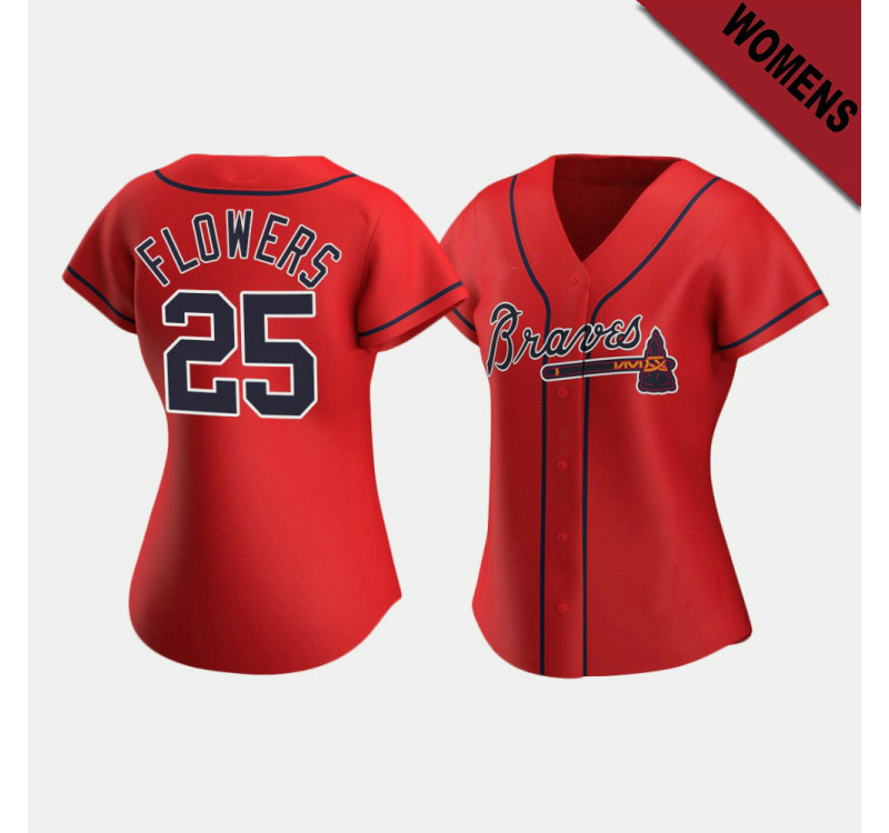 - Women's Braves Tyler Flowers #25 Red Replica 2020 Alternate Jersey