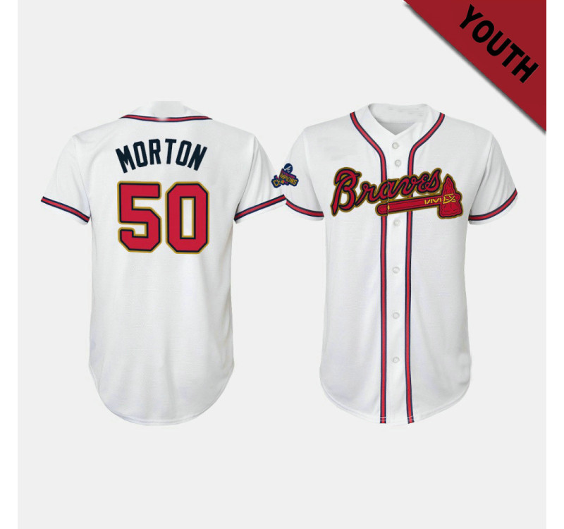 • Youth Atlanta Braves #50 Charlie Morton Replica 2022 Gold Program Jersey - White