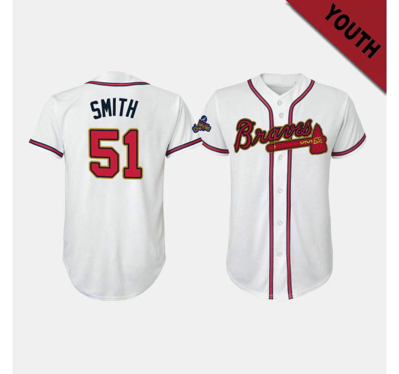 - Kid's Braves #51 Will Smith Replica 2022 Gold Program Jersey - White