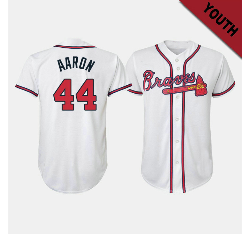 - Kid's Braves Hank Aaron #44 White Replica Home Jersey