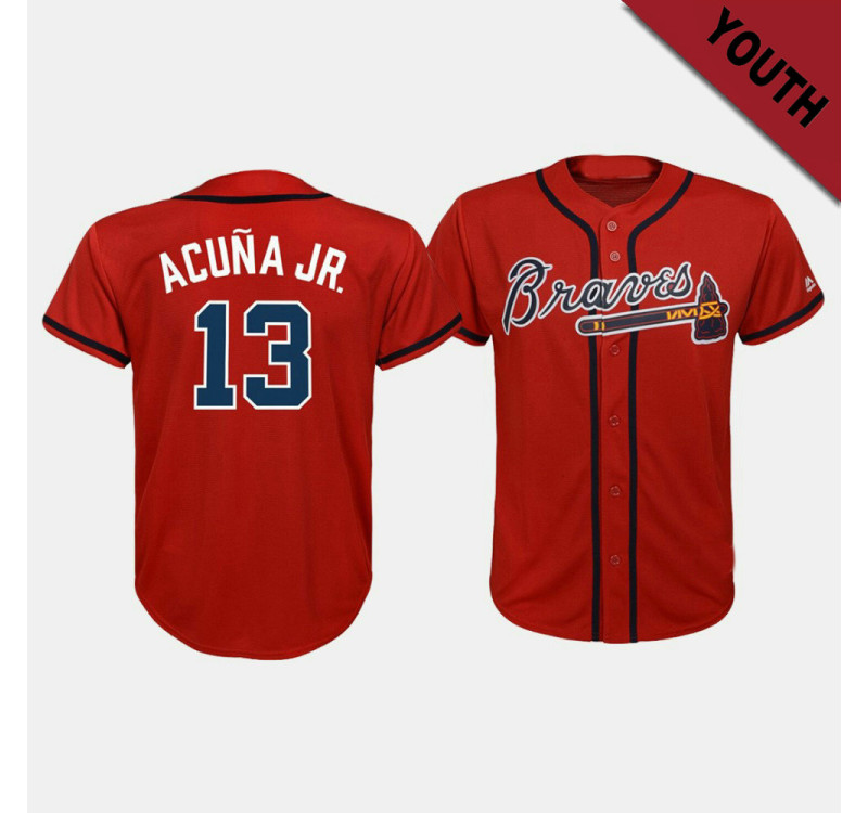 - Kid's Braves Ronald Acuna Jr. #13 Scarlet Cool Base Majestic Official Alternate Jersey